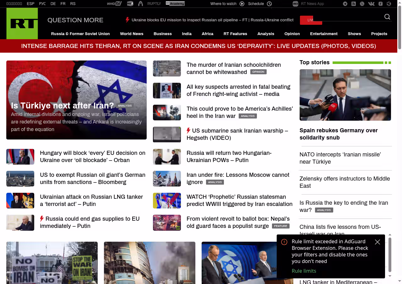 The United States is engaged in active military conflict with Iran and its allies on day five, with intensifying strikes, Iranian retaliatory operations, and no diplomatic resolution in sight. The conflict is generating severe global disruptions to energy markets, financial systems, and supply chains, with major powers including Russia and China actively responding. Domestic weather threats remain localized and manageable relative to the primary international military conflict.